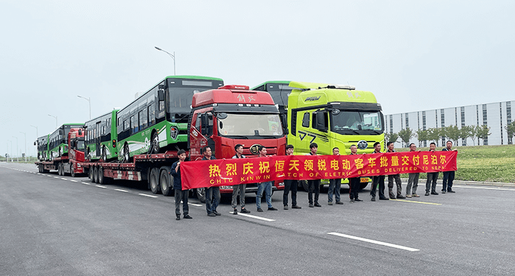 Mar. 2022 CHI Bus entrega 46 unidades de autobuses eléctricos puros de lujo de 11 metros a clientes coreanos en una sola entrega